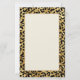 Stationery paper with a stylish pattern. Exotic black leopard spots on a gold background. Wild yet elegant style. A n antique yellow coloured rectangle frame with a faux gold foil border layered over top for you to write inside.