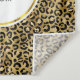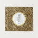 A white coloured circle frame with a faux gold foil border layered over top with your personalized text inside.