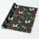 Wild flowers and butterflies on black wrapping paper