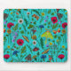 Wild flowers and moths on teal mouse pad