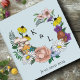 A light blue background featuring wildflowers, mushrooms, white daisies, and monarch butterflies. Perfect for couples who love the outdoors and rustic charm.