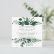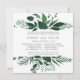 Our Wild Forest rehearsal dinner invitation in a unique square format frames your ceremony rehearsal and celebration details with a top and bottom border of winter watercolor foliage and leaves in lush hunter green.