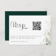 Wild Forest Foliage Wedding, QR code rsvp card. Elegant watercolor greenery and gold with coordinating emerald green colour backing.