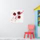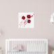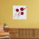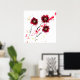 Original painting of ragged poppies, overlaid with graphic design writing on stems and watercolor paint splatter. For everyone who is a little wild at heart. Deep ed and bright red petals, yellow and mauve poppy centre, hand written black cursive stems that read WILD FREE and SPIRITED. Colourful watercolor paint splatter.