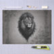 Wild Grace: striking portrait of a lion in black and white tones. The lion's thick, flowing mane is the centerpiece of the image and each hair appears to be carefully crafted, giving the image a dynamic depth. The lion's eyes shine in a warm amber hue that creates a fascinating contrast to the otherwise monochrome colour palette. The combination of the bold black and white tones as well as the bright amber creates a harmonious balance between strength and grace.