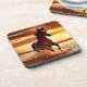 Coaster in a portrait of a beautiful wild horse galloping through the surf, against a sunset sky