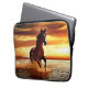 Laptop sleeve in a portrait of a beautiful wild horse galloping through the surf, against a sunset sky