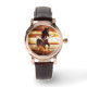 Women's watch in a portrait of a beautiful wild horse galloping through the surf, against a sunset sky