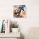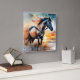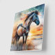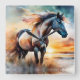 Wild Horse on Grassy Dune at Sunset Square Wall Clock