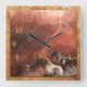 WILD HORSES DESERT STORM SQUARE WALL CLOCK