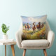 Wild Horses Running in a Wildflower Meadow Throw Pillow
