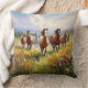 A beautiful pillow for cowboy decor and western art lovers, a gorgeous painting of wild horses running in a grassy field of wildflowers.