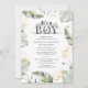Perfect for your jungle themed couples or mom to be baby shower invitation. Wild, calm, and elegant boys safari animal template featuring a giraffe, gold effect and green palm leaves with popular typography you can completely change when you click the "Personalize" button.