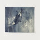 Majestic killer whale in the wild, jumping over the icy waters of a snowy landscape.
