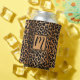 Wild Leopard Animal Print Pattern with Monogram Can Cooler