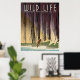 Vintage Poster for National Park Service, showing a deer drinking from a stream in the forest.