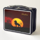 Wild lion, sunrise & calligraphy on a jungle metal lunch box