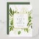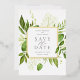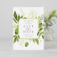 Our Wild Meadow wedding save the date frames your wedding details with an elegant square border of lush watercolor foliage in spring shades of moss and sage green, with real gold foil trim on a crisp white background. A modern and elegant take on the botanical trend for spring or summer weddings in fresh greens.