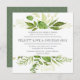 Our Wild Meadow wedding invitation in a unique square format frames your wedding details with a top and bottom border of painted watercolor greenery and foliage in lush shades of spring green, olive and fern. A modern yet organic choice for spring or summer weddings featuring fresh green leaves in 2017's colour of the year.