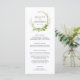 Our garden chic wedding menu features your starter courses, entrees and desserts in elegant lettering, with your names and wedding date encircled by a green botanical wreath illustration. Coordinates with our Wild Meadow wedding collection.