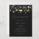 This wild multicolor floral black Quinceañera invitation is perfect for a modern 15th birthday party. The design features watercolor pink, blush, purple, navy and white elegant flowers with emerald green leaves in a dark background.