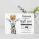 Celebrate the Wild One with a jungle theme first birthday. Invitation featuring a watercolor giraffe jungle animal with gold crown and bow tie