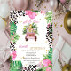 This first birthday invitation with watercolor wild animals, and palm leaves.