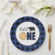 Wild One Bear blue Buffalo Plaid First Birthday Paper Plate