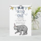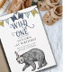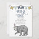 Wild One 1st birthday bear in party hat party invitation. Gender neutral.