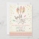 Wild one Birthday Girl Pink Gold 1st Boho Feathers Invitation