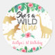 Wild One Dinosaur Girls 1st Birthday Classic Round Sticker