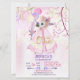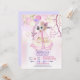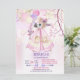 Wild One First birthday party invitation features a pink watercolor Teepee with tribal feather and floral accents. Pretty pastel balloon bouquet and tiny pink polka dots over soft pink and cream leaf background. Party information is ready for you to customize.