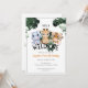 Fun safari themed 1st birthday party invitation, featuring tropical greenery and cute jungle animals (tiger, giraffe and hippo). This birthday template is very easy to customize! Check out this fun safari-themed collection to make your little one's party unforgettable!