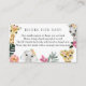 A book request insert card for baby shower. Featuring watercolor jungle animals, tropical leaves and flowers with poem: "ONE SMALL REQUEST, WE HOPE NOT TOO HARD
