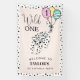 Wild One - A cute black and white snow leopard with cutout effect and three colourful balloons for girl or boy 1st Birthday banner sign to greet all their guests - The perfect safari wild one animal theme for your child's first birthday party. Number on balloon can be edited to suit a birthday of any age! Matching leopard spots frame this sign for added fun! All original art by Marisu Paper Co.