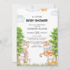 Cute Safari theme baby shower invitation template card featuring a hand drawn illustration of a giraffe, leopard, rhino, lion, elephant, and zebra. The text says "a little wild one is on the way." Perfect gender neutral invite.