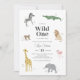 The phrase “A Little Wild One is on the Way” is elegantly displayed in a modern mix of playful script and clean fonts, creating a fresh, stylish look that’s ideal for a baby girl’s shower. Soft blush tones and delicate greenery add a sweet, feminine touch to the hand-painted animal illustrations, bringing a gentle sense of the wild to your celebration.
