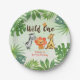 Wild One, Safari First Birthday plates. This cute design features five watercolor safari animals and jungle style leaves. add your custom text to create your own special party plate. For additional coordinating wild one party supplies please visit MetroEvents on Zazzle. For custom designs please contact Metro-Event.com.