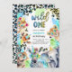 Wild One Safari Boy Blue Leopard Birthday Party Invitation