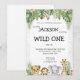 Celebrate your little one's big milestone with this adorable Wild One Watercolor Safari 1st Birthday Invitation. This design features sweet baby safari animals—including a lion, monkey, elephant, and giraffe—peeking out from a frame of lush tropical leaves. The clean, modern layout perfectly captures the adventurous spirit of a jungle party while providing all the essential event details. This fully customizable template is the perfect way to invite family and friends to celebrate your "Wild One's" special day, setting the tone for a fun and memorable celebration.