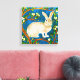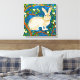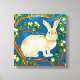 Canvas in an illustration of a wild rabbit, surrounded by flowering tree branches, against a dark denim blue background
