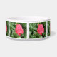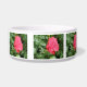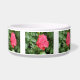 This awesome pet bowl features a detailed photograph of a pretty wild rose. This beautiful flower stands out against a background of green leaves. The photograph was taken in the UK using macro photography for a detailed image.