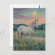 A majestic white horse stands silhouetted against a breathtaking sunset, its mane gently lifted by a whispering breeze. Did you know, horses can sleep both standing up and lying down? This tranquil scene captures the horse in a moment of quiet contemplation, its form blending seamlessly with the rolling hills and wildflowers of the surrounding landscape. The setting sun casts a warm glow, painting the sky in a tapestry of vibrant hues. It's a scene that evokes a sense of peace and tranquility, inviting us to pause and appreciate the simple beauty of nature.