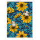 Hand-painted vector sunroot flowers and goldcrest birds, vector pattern.