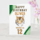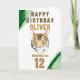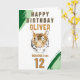 Wild Tiger Head Watercolor Birthday Card. Featuring a watercolor tiger head, bold green brushstrokes, and customizable text, this design is perfect for any young adventurer. Personalize with any name and age to create a truly unique and memorable greeting. Ideal for jungle themed parties or tiger lovers.