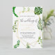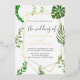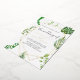Perfect for a beach or destination wedding, this stunning invitation features lush green watercolor banana palm leaves, ferns, and tropical foliage for a vibrant summer feel. Elegant pressed foil highlights the couple’s names and geometric accents, available in gold, silver, or rose gold for a luxurious touch.