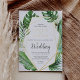 This wild tropical palm gold foil geometric wedding foil invitation card is perfect for a beach or destination wedding. The design features an exotic array of green watercolor banana palm tree leaves, ferns, foliage, botanical plants and greenery for a tropical summer feel with luxurious pressed foil for the names and geometrics. Choose silver, gold or rose gold foil.