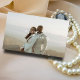 On the back, create a lasting impression! Add a cherished photo of you and your partner, showcasing the love that brought you together. The back also features space for your names with a subtle, elegant knot design, reflecting the modern and sleek aesthetic.