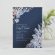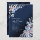 This wild and whimsical wedding invitation, featuring bright botanical illustrations in white, soft blue, and peach is set against a deep navy gradient background. Fern-like foliage, delicate mushroom caps, and other nature-inspired motifs bring a playful yet magical feel. The bold contrast of light and dark tones adds drama and charm, making this collection perfect for couples who love floral vibes with a modern twist. From invitations to signage and party decor, every detail is designed to spark wonder and set the stage for a uniquely memorable celebration. Search ID1110 to see other products in this striking wedding design set. Note: design may contain generative content.