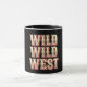 Retro style grunge "Wild Wild West" text design with striped letters in yellow, red and beige colours